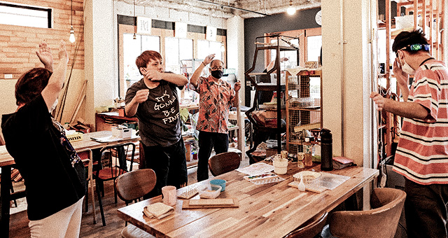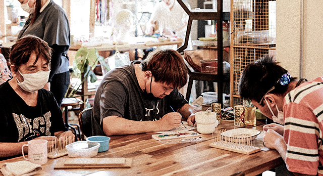 身体的もしくは精神的に障がいを持っていたり、一般企業での雇用が困難な方々に対し、生活支援や就労の機会を提供している事業です。生活介護では創作活動や野外活動を通じて、社会参加と福祉の増進を支援し、就労継続支援B型では主に廃材を利用した木工品やアクセサリーを作る就労作業を行っています。